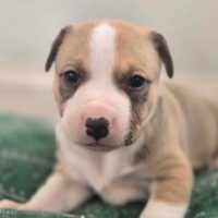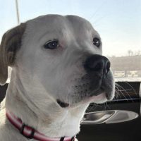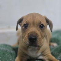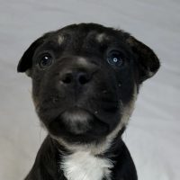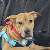 Loyal Staffy mix who loves kids and human company.