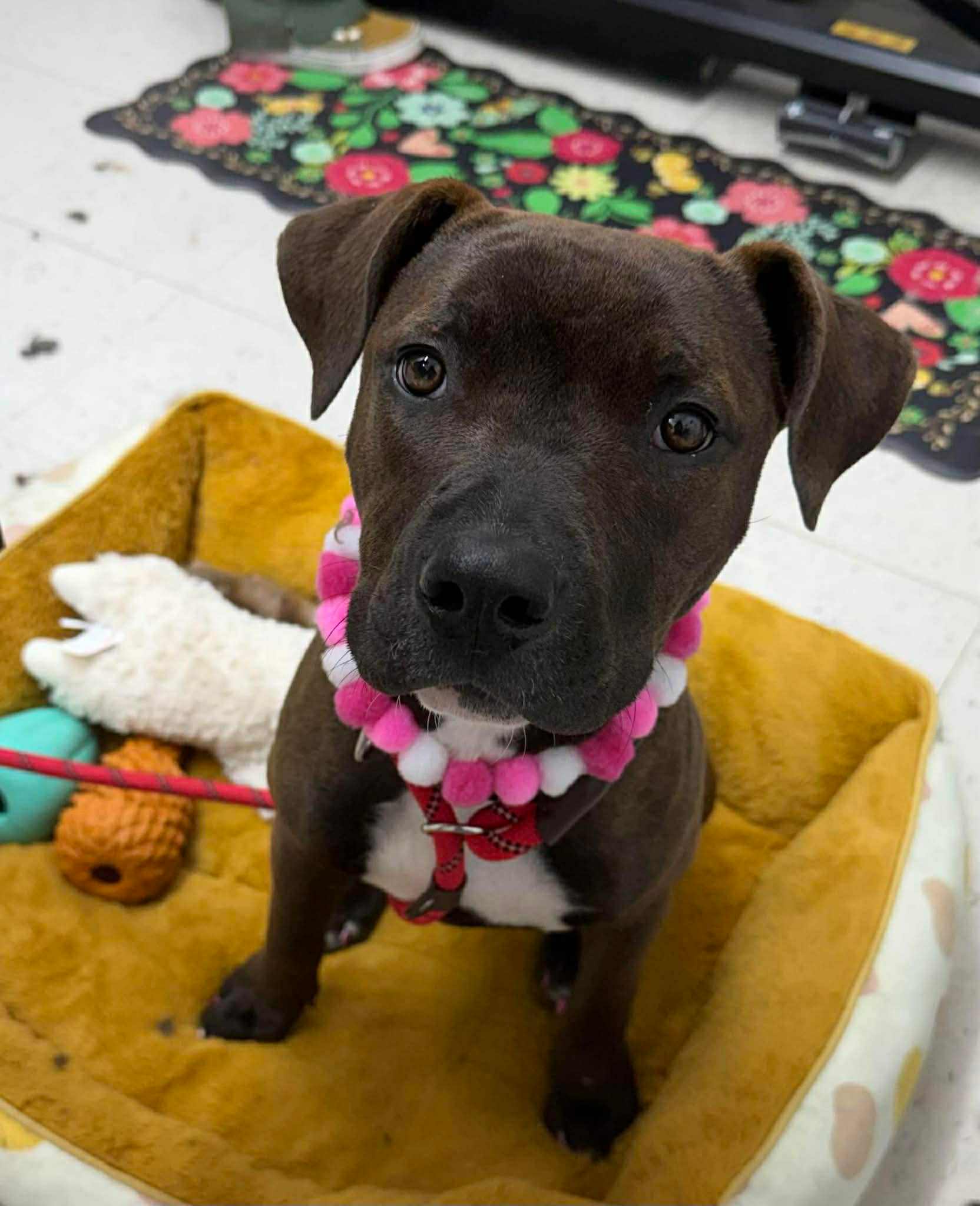 If you’ve been searching for a dog who brings equal parts sweetness, silliness, and smarts, Bobbi Jo is your girl. She’s bursting with love and snuggles, always ready for couch cuddles after an adventure-filled day. Whether it’s exploring the backyard, going on a trail walk, meeting new friends, or bouncing around with her favorite toys, Bobbi Jo lives life with happy enthusiasm.