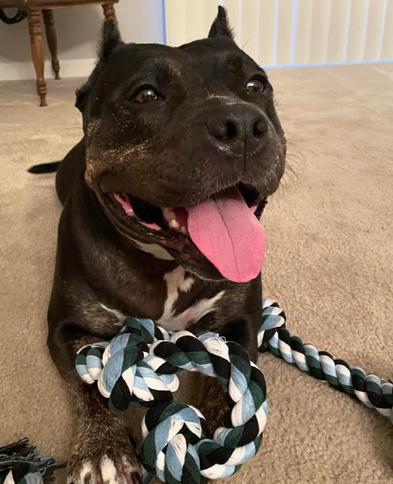 Helen is a beautiful Staffy mix with a heart as big as her smile. She thrives on human connection and is happiest by your side, sharing affection, playtime, and quiet moments. With patience, structure, and an experienced hand, Helen blossoms into a devoted, gentle, and playful companion who adores kids and cherishes routines.